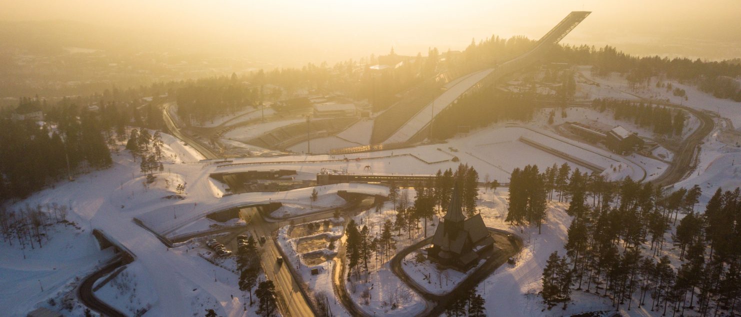Next to the jump, is the Holmenkollen Chapel that was first built in 1903 but it was destroyed by fire in 1992. The new chapel was completed in 1996.