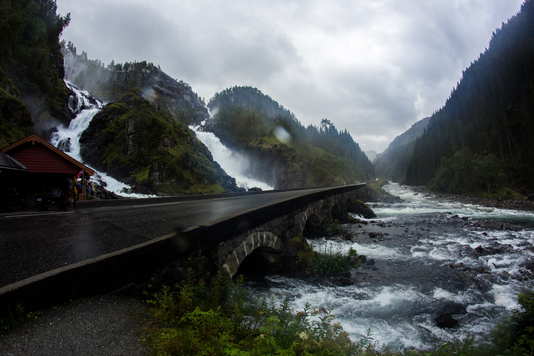 The king of the waterfalls is Låtefoss, twin-waterfall close to route 13.